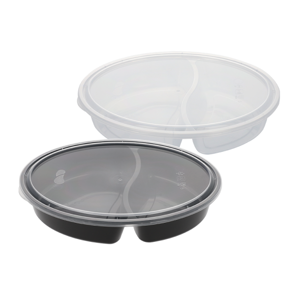 B750 2칸 (타원형) 750ml 재질 : PP 규격 : 212*157*40 색상 : 몸통-검정,투명 / 뚜껑-투명 포장 : 한 박스 당 200개입 (50개입 x 4봉) 전자레인지 사용 가능. 목록